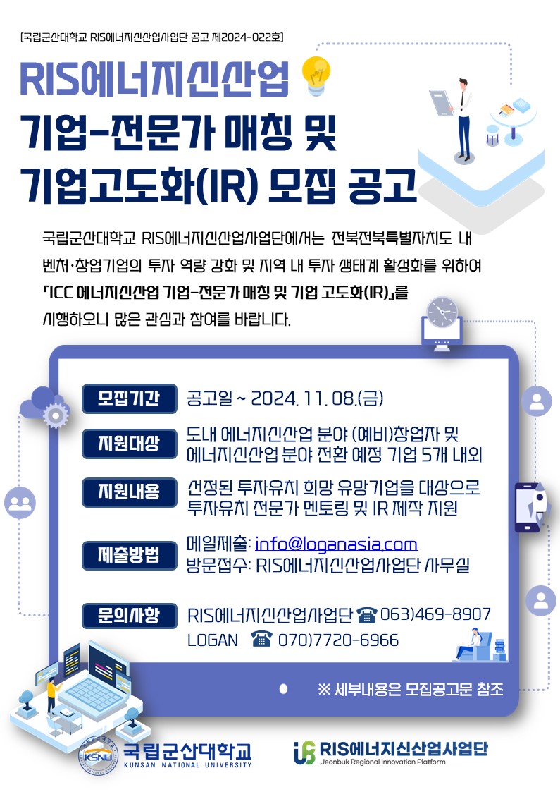 [RIS에너지신산업사업단] ICC 에너지신산업 기업-전문가 매칭 및 기업고도화(IR) 모집공고