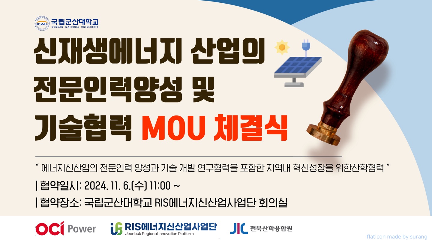 - 신재생에너지 산업 전문인력 양성 및 기술협력을 위한 MOU 체결